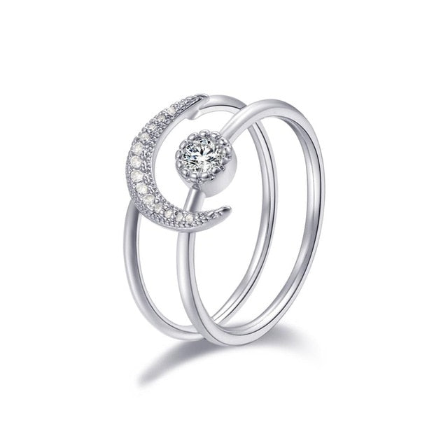 Women's Rose Gold Plated Crystal Star Moon Ring