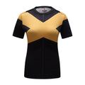 Step into the world of superheroes with the Women's X-Men Compression 'Dark Phoenix' Elite Short Sleeve Rashguard. This stunning piece is inspired by the iconic Jean Grey as she transforms into the formidable Dark Phoenix. Designed to empower and enhance your performance, this rashguard showcases a sleek black body adorned with a striking gold X that wraps elegantly around your shoulders and back, symbolizing strength and resilience.