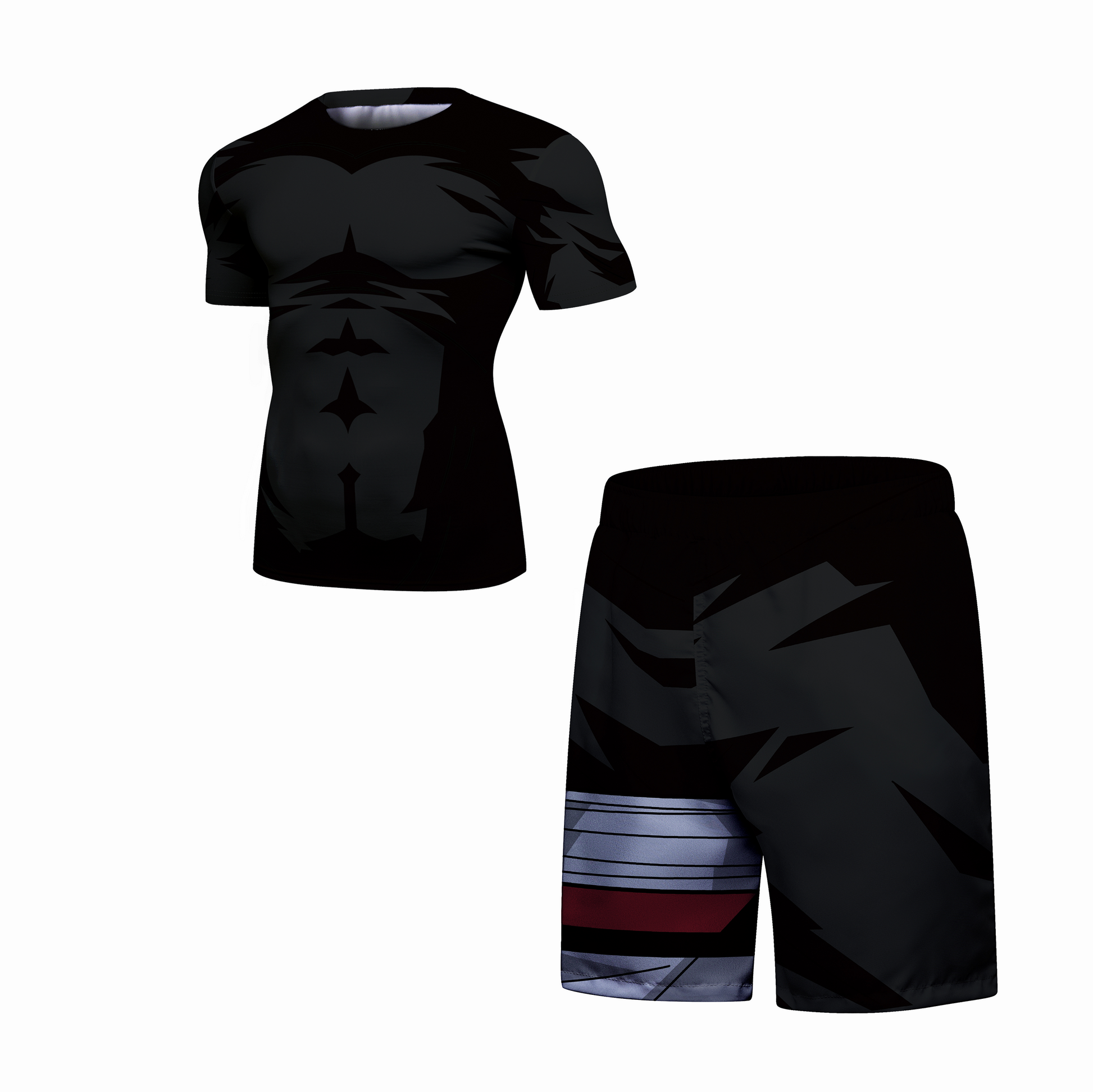 BJJ Naruto Rock Lee Dark Elite Short Compression Rash Guard Rash Guard Set