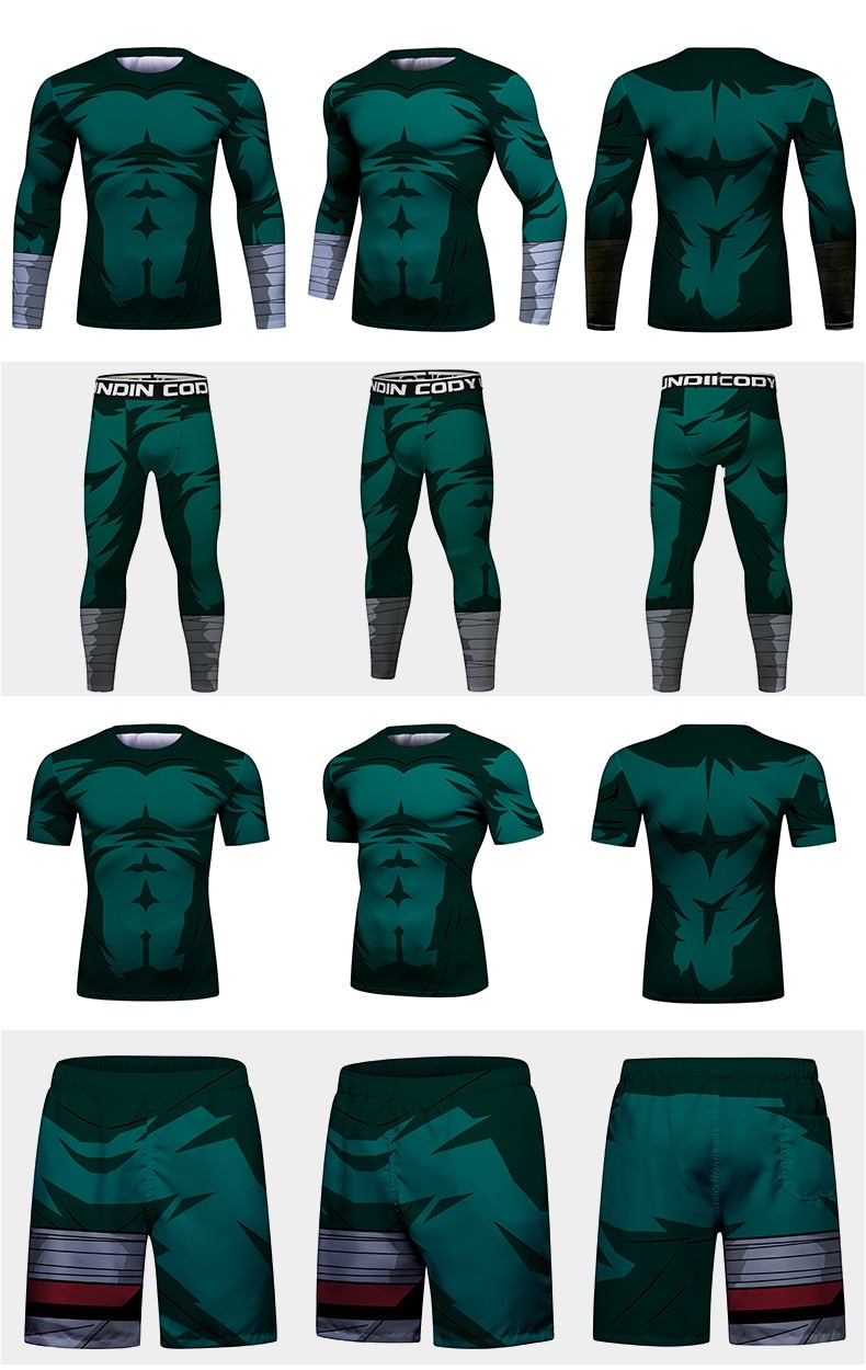 BJJ Naruto Rock Lee Rash Guard Elite Three Piece Short Sleeve Compression Rash Guard Set