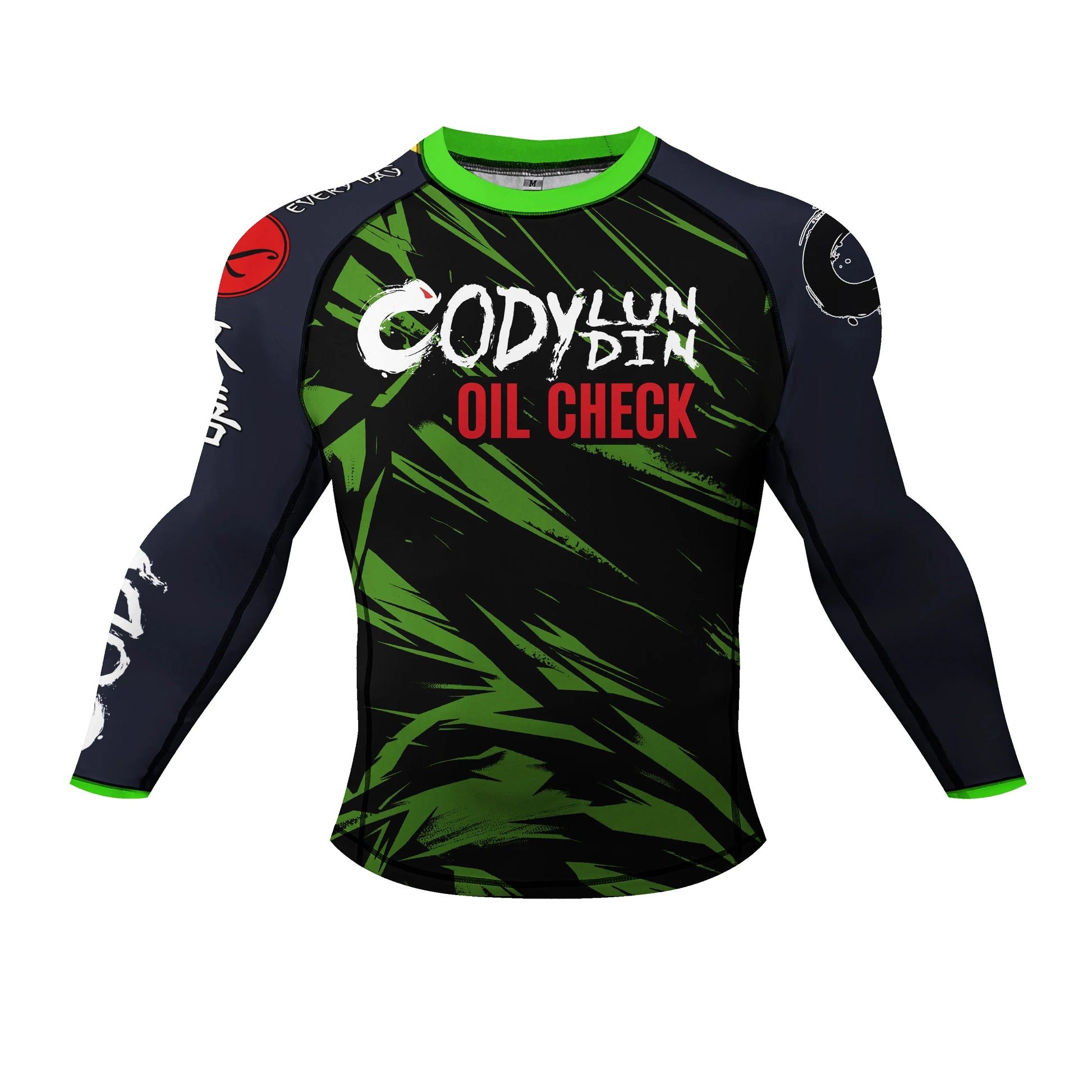 Oil Check: Lubed for Battle, Ready to Roll 4 Piece Compression Rashguard Set is high-performance activewear designed for athletes who train hard and want a bold, confidently styled look—whether you're on the mats or in the gym.